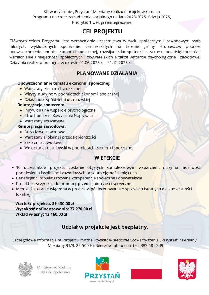 Projekt realizowany będzie od czerwca 2025 r. do 31 grudnia 2025 r.